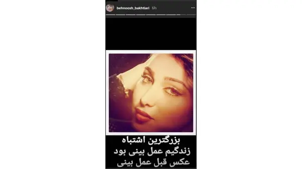 بختیاری نوشت: بزرگترین اشتباه زندگیم عمل بینی بود.. عکس قبل عمل بینی.