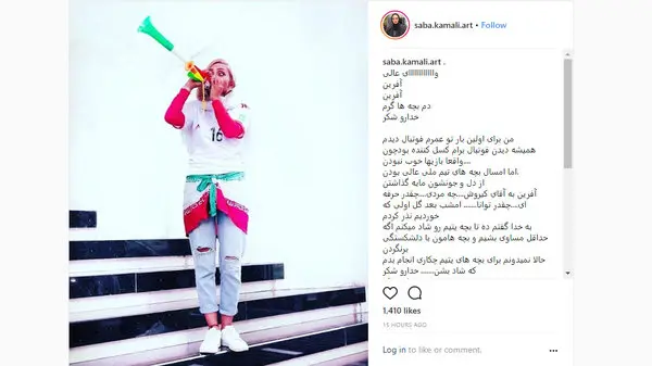 رکنا: صبا کمالی با انشتار عکسی جالب در ورزشگاه آزادی به تمجید از تیم ملی پرداخت.