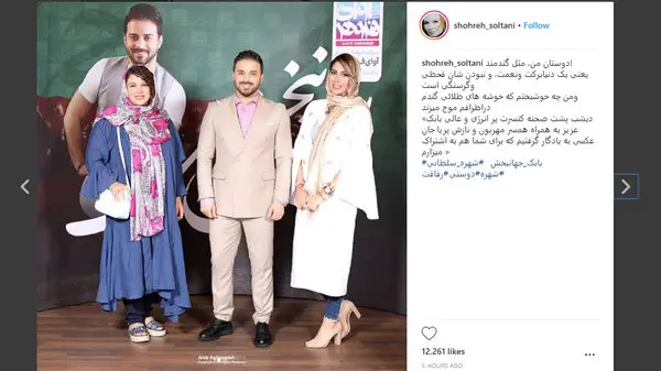 رکنا: شهره سلطانی عکسی به همراه بابک جهانبخش و همسرش در کنسرت این خواننده منتشر کرد.