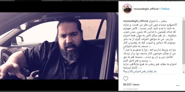 رضا صادقی این ویدئو را در اینستاگرامش به اشتراک گذاشت و نوشت: