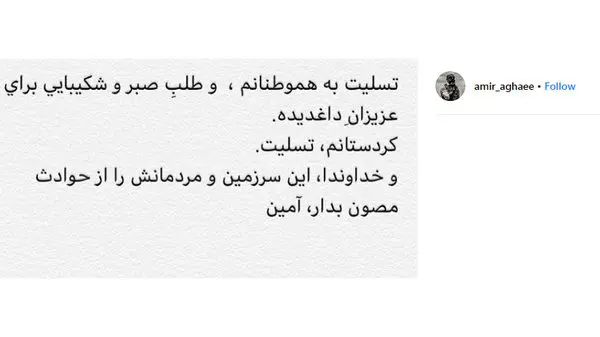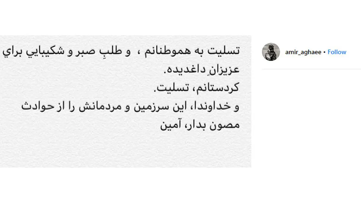 دعای «امیر آقایی» برای در امان ماندن از حوادث