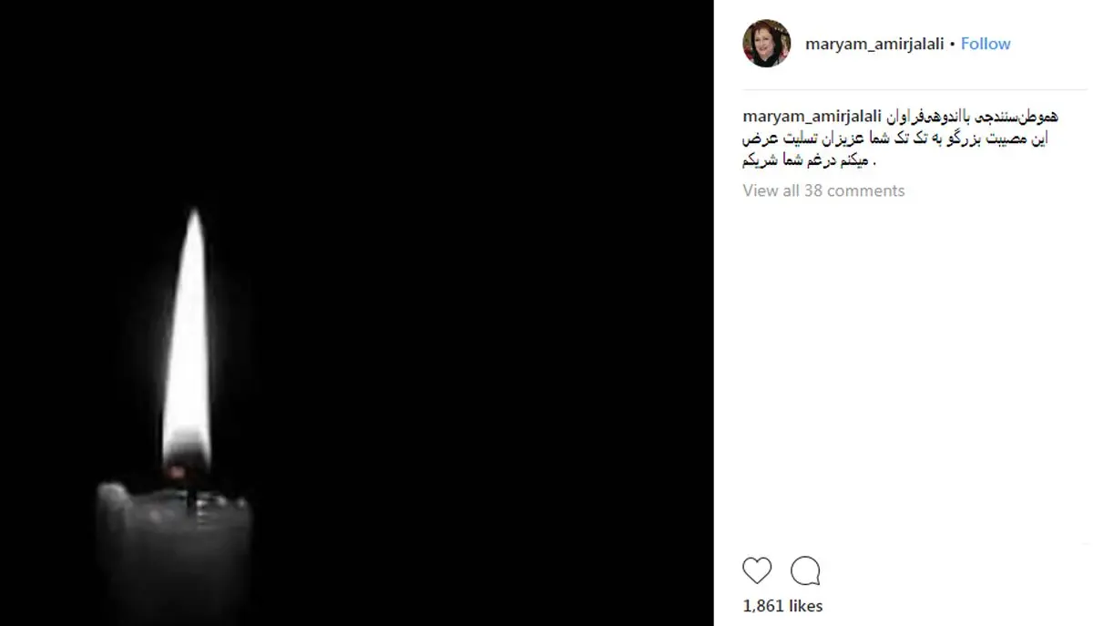 مریم امیرجلالی در اینستاگرامش نوشت: