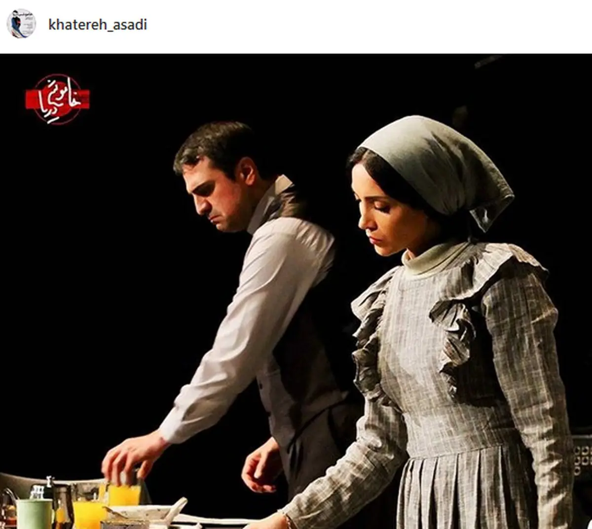 خاطره اسدی با انتشار این عکس در اینستاگرامش نوشت: مردمی که سکوت رو میشناسن یه عالمه فریادُ به خودشون بدهکارن.#خاموشی_دریا تماشاخانه ایرانشهر. عکس: علیرضا شیوا