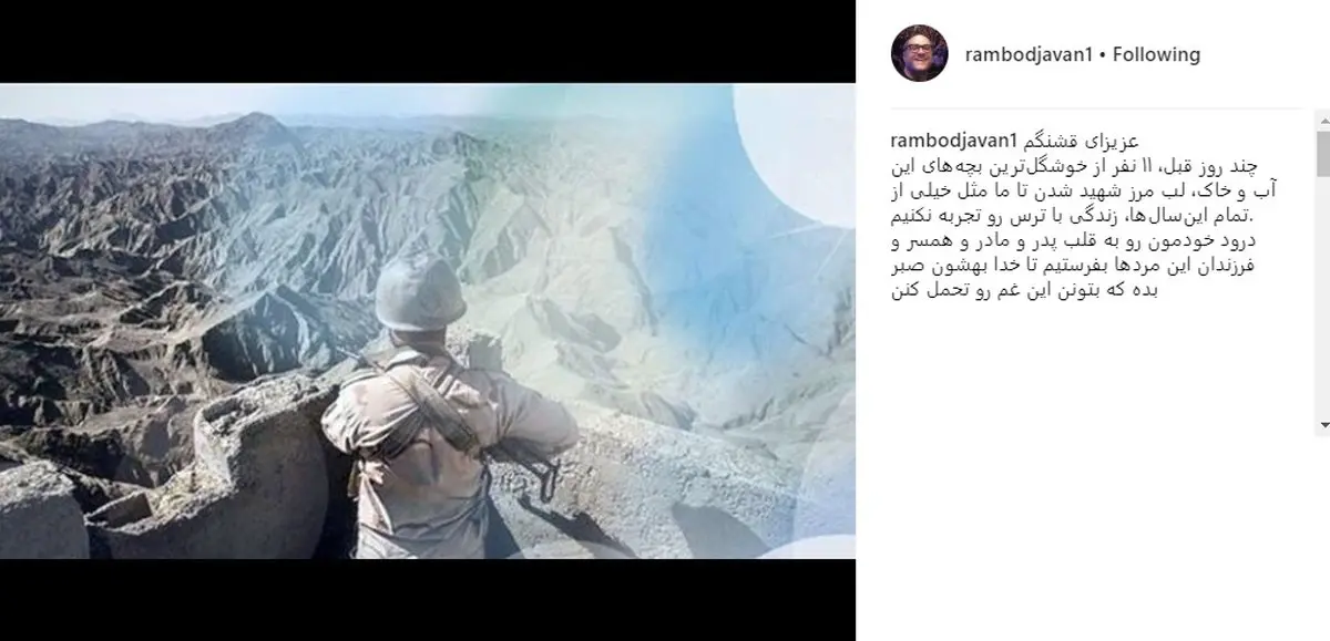 واکنش رامبد جوان به شهادت ۱۱ مرزبان ایرانی +عکس