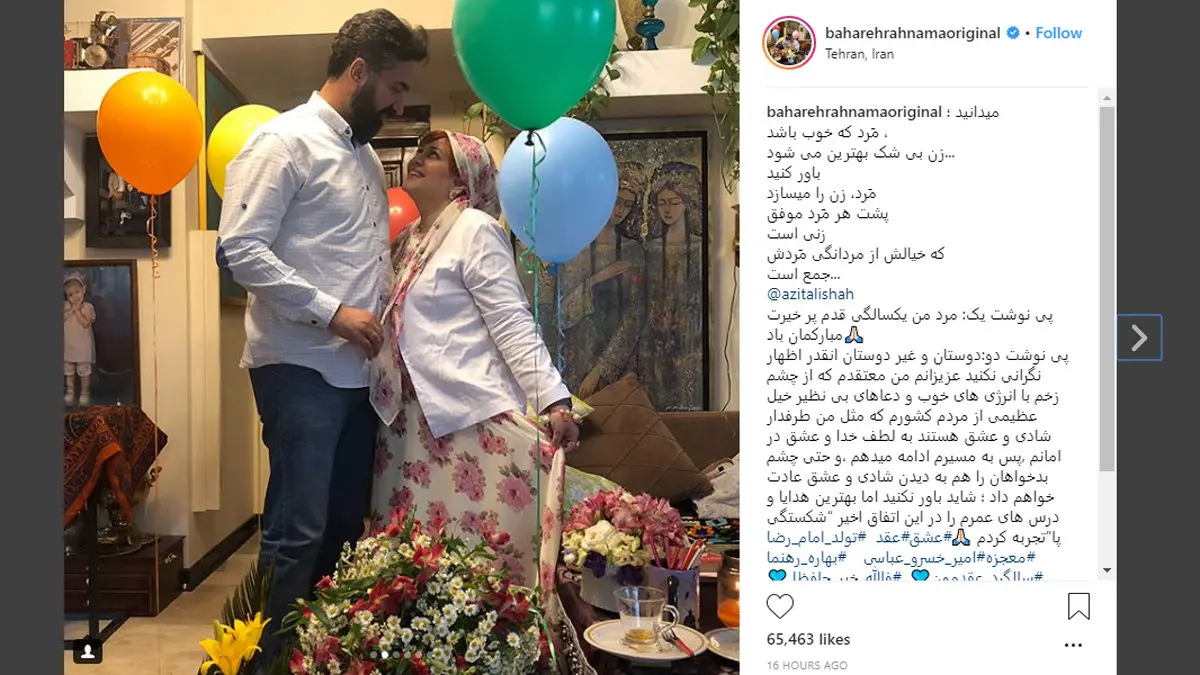 رکنا: جشن اولین سالگرد ازدواج بهاره رهنما و همسرش را در این عکس می بینید.
