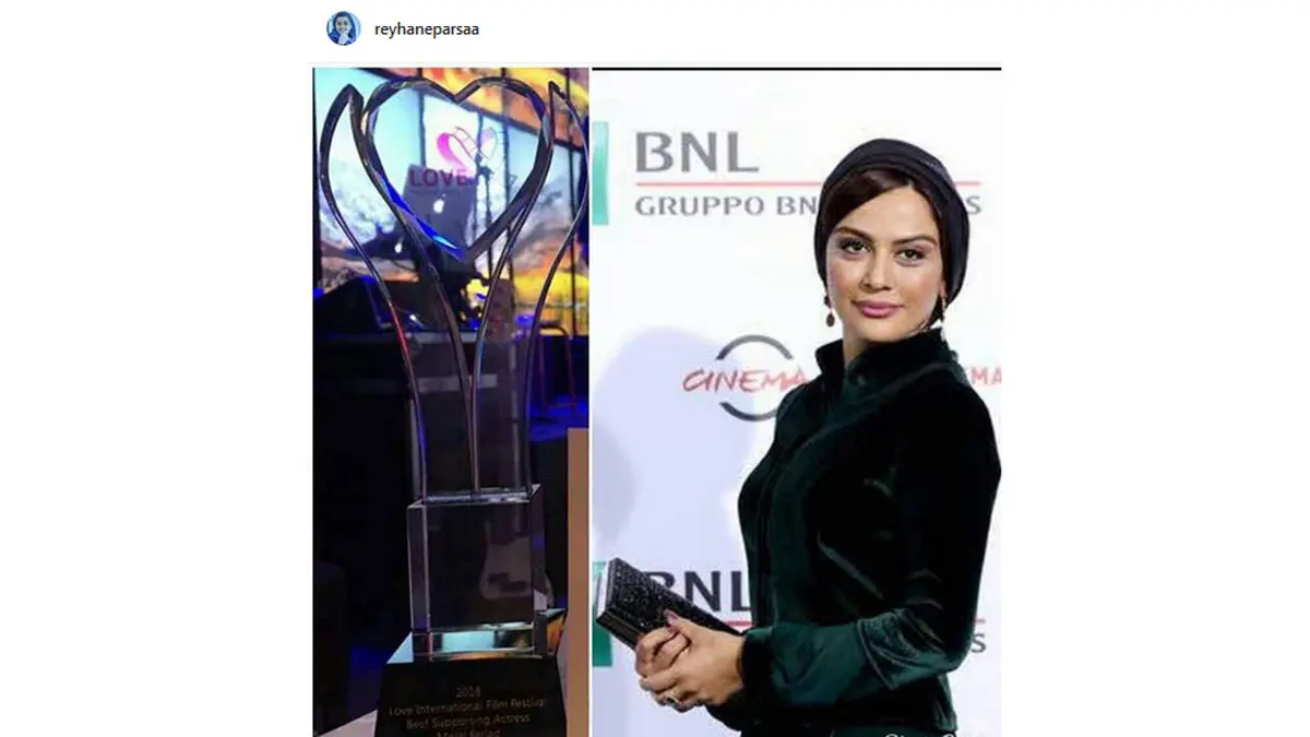 رکنا: ریحانه پارسا با انتشار این عکس در صفحه اش نوشت: مارال فرجاد جایزه بهترین نقش مکمل زن از جشنواره بین المللی عشق آمریکا برای بازی در فیلم " جاودانگی" دریافت کرد.