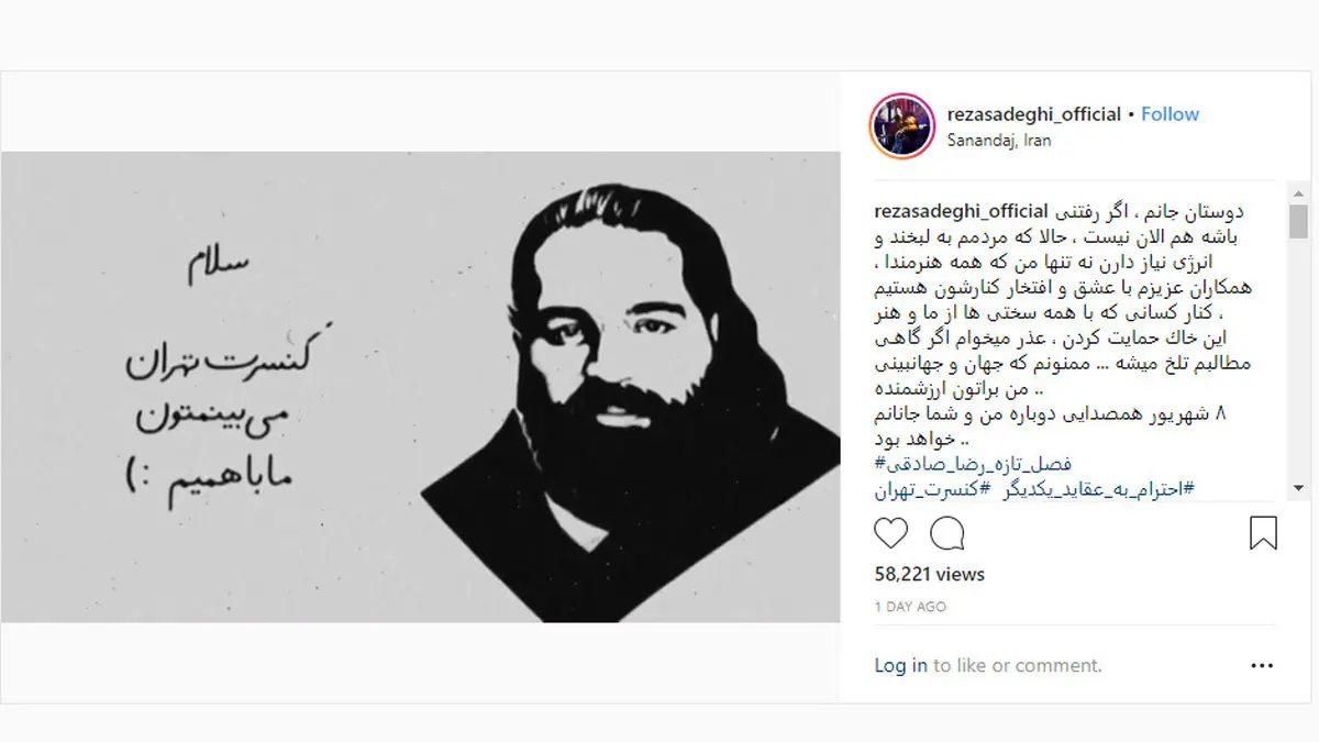 رضا صادقی در پستی دیگر به شایعات خروجش از ایران واکنش نشان داد و نوشت: دوستان جانم، اگر رفتنی باشه هم الآن نیست، حالا که مردمم به لبخند و انرژی نیاز دارن، نه تنها من که همه هنرمندان، همکاران عزیزم با عشق و افتخار کنارشون هستیم، کنار کسانی که با همه سختیها از ما و هنر Art این خاک حمایت کردن، عذر می خوام اگر گاهی مطالبم تلخ میشه... ممنونم که جهان و جهانبینی من براتون ارزشمنده.