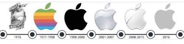 از سال 1976 تا به حال، لوگوی این شرکت دچار تغییر و تحولات زیادی شده تا به شکل امروز خود برسد. آخرین تغییری که روی لوگوی شرکت اپل انجام شد، در سال 2016 اتفاق افتاد. این تغییرات را میتوانید در تصاویر زیر مشاهده کنید.