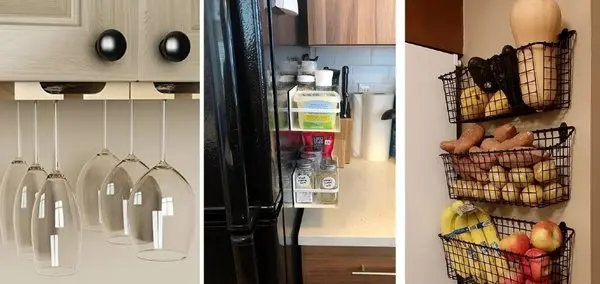 بسیاری از افراد تنها فضای ذخیره‌سازی آشپزخانه را کابینت‌ها می‌دانند و فضاهای ذخیره‌سازی بر روی دیوار را نادیده می‌گیرند. بااین‌حال، مهم است که فضای روی دیوار را در نظر بگیرید. برای مثال، می‌توانید از بالای کابینت‌ها برای قرار دادن برخی از وسایل استفاده کنید. همچنین، می‌توانید ظروف و تابه‌ها را از کابینت‌ها بیرون بیاورید و آن‌ها را به دیوار آویزان کنید.