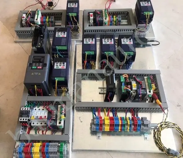اینورترها در کنار این وظیفه اصلی امکان راه اندازی دستگاه با برق تکفاز را نیز فراهم می کردند. و البته یک نکته اصلی وجود داشت و آنکه برای راه اندازی الکتروموتورها بوسیله اینورترهای تکفاز یقینا باید اتصالات آن را در حالت مثلث قرار می دادم. چرا که خروجی اینورترها در ولتاژ 220 ولت است. دستگاه دارای 3 الکتروموتور بود که یکی از آنها وظیفه جابجایی نواری که سینی بر روی آن قرار می گرفت را داشت، یک موتور وظیفه پایین و بالا بردن سینی یا به اصطلاح ما دیس را به عهده داشت و آخرین موتور وظیفه تزریق مواد به داخل هر کاسه را داشت. سرعت اینورترها بوسیله اپراتور تعیین می شد و اینکار بوسیله صفحه لمسی واسط کاربر به نام HMI دلتا انجام می شد.