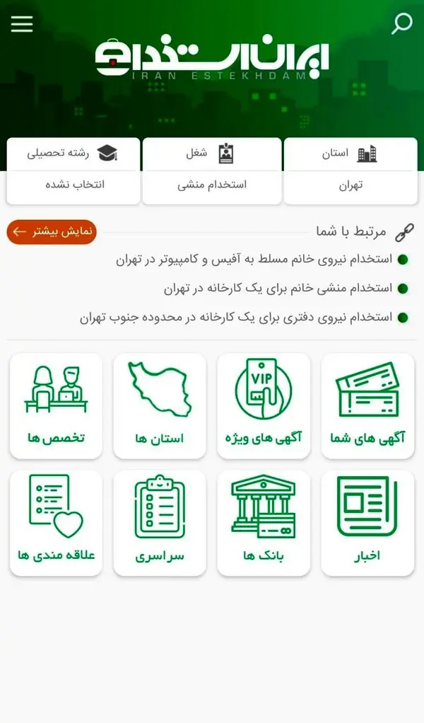 معرفی اپلیکیشن ایران استخدام برای کارجویان و کافرمایان