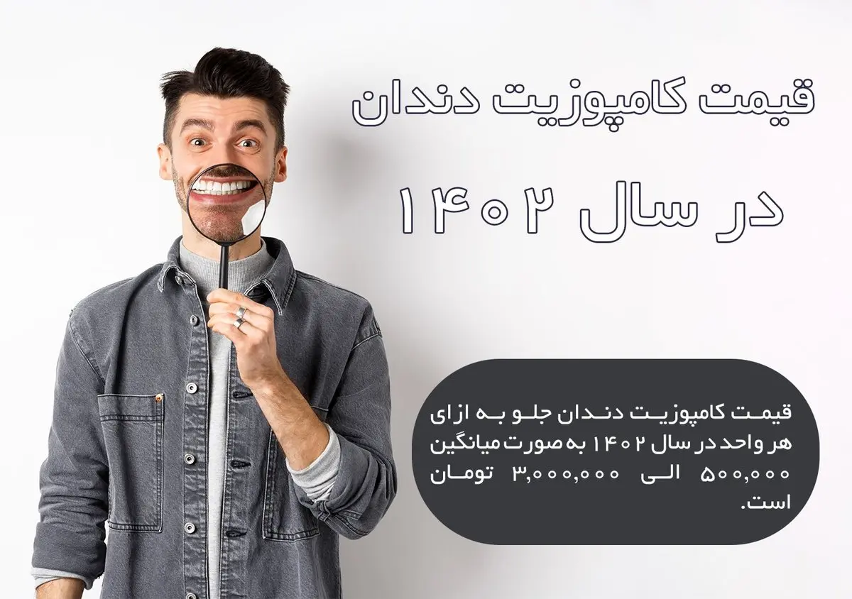 همانطور که در ابتدای مقاله گفته شد قیمت کامپوزیت دندان دارای اهمیت بسیار زیادی است به همین دلیل نیز ما قیمت این درمان را در سال جدید یعنی 1402 مورد بررسی قرار می دهیم. قیمت کامپوزیت دندان جلو به ازای هر واحد در سال 1402 به صورت میانگین 500.000 الی 3.000.000 تومان است. برای کسب اطلاع دقیق از قیمت روز کامپوزیت می توانید از لینک زیر استفاده فرمایید.