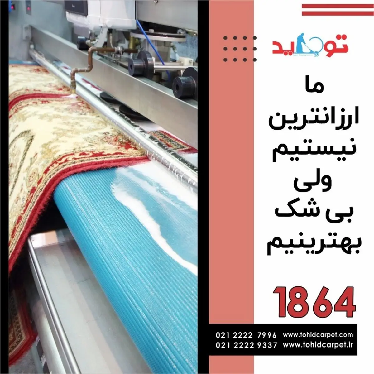 قالیشویی توحید یکی از بهترین قالیشویی های تهران است که عنوان واحد نمونه سال های متوالی را در اختیار دارد. ما در قالیشویی توحید تلاش می کنیم تا بهترین خدمات شستشوی فرش و موکت را به مشتریان مان ارائه نماییم تا رضایت مندی ایشان را دریافت کنیم. رضایت مشتریان ما در طول بیش از 30 سال فعالیت، خود شاهدی بر این ادعای ماست.