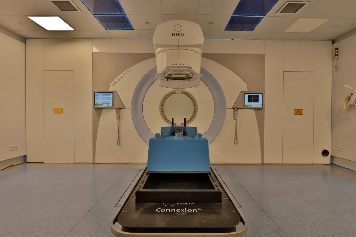 فقط کافیست بیمار روی تخت دراز بکشد و با کمک تکنیسین رادیوتراپی ، ماسک پلاستیک مخصوصی را روی صورت خود قرار دهد. تکنیسین بعد از اینکه وضعیت بیمار را روی تخت ثابت کرد، اتاق را به مدت چند دقیقه ترک میکند تا اشعه از زوایای مختلف به تومور تابانده شود.