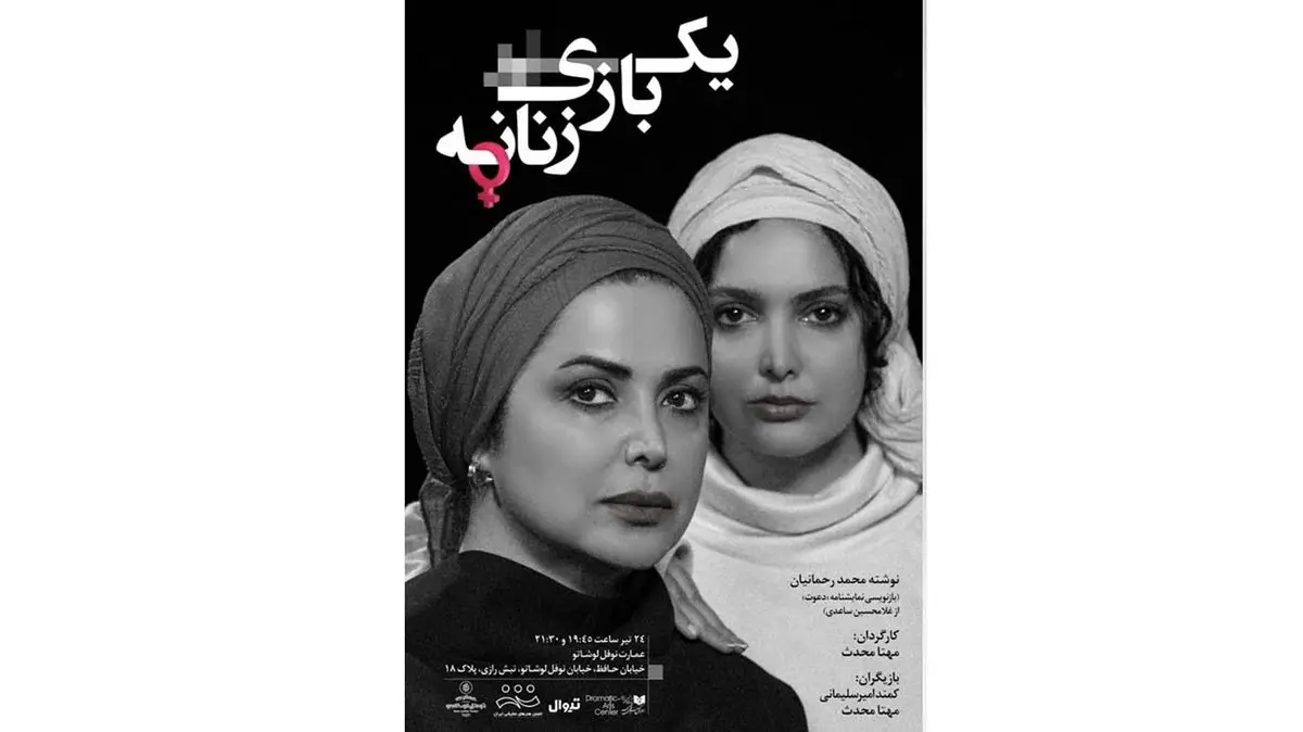 به گزارش رکنا، «یک بازی زنانه» نوشته محمد رحمانیان که اقتباسی بر اساس نمایشنامه «دعوت» اثر «دکتر غلامحسین ساعدی» است روز شنبه ۲۴ تیر در دو سانس ٢٠:٠٠ و ۲۱:۳۰ در عمارت نوفل لوشاتو اجراخوانی میشود.