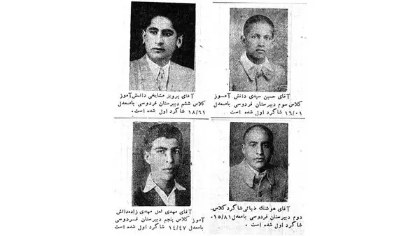 به گزارش رکنا، این خبر در مردادماه 1328 منتشر شد. دبیرستان فردوسی، قدیمیترین دبیرستان همچنان فعال مشهد، در چهارراه دانش فعلی و چهارراه کلانتر سابق قرار دارد و در آن زمان، یکی از کانونهای فرهنگی مهم و مورد توجه مردم مشهد بود. ظاهراً برگزاری مشترک امتحانات در سطح دبیرستانها و رتبه آوردن دانشآموزان دبیرستان فردوسی، اعتبار خاصی به این مرکز آموزشی میداد. در این سال، پرویز مشایخی با معدل 61/18 رتبه اول کلاس ششم، مهدی لعل مهدیزاده با معدل 47/14 رتبه اول کلاس پنجم، حسین سیدی با معدل 01/16 رتبه اول کلاس سوم و هوشنگ ضیائی با معدل 81/15 رتبه اول کلاس دوم را برای دبیرستان فردوسی کسب کردند. البته معدل این افراد، چنگی به دل نمیزند اما به هر حال، اینها بچه درس خوانهای آن دورهاند و اگر الان از آن ها علت کم بودن معدلشان را بپرسید، خواهند گفت درس هایشان خیلی از درسهای شما سختتر بوده است؛ دقیقاً همان عبارتی که شما هم به نوه، نتیجههایتان خواهید گفت!