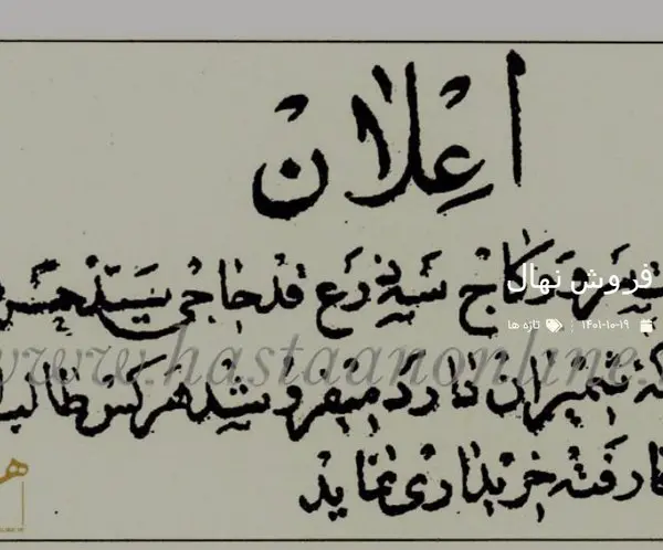 تصویر قدیمی ترین نمونه تبلیغ فروش نهال در ایران