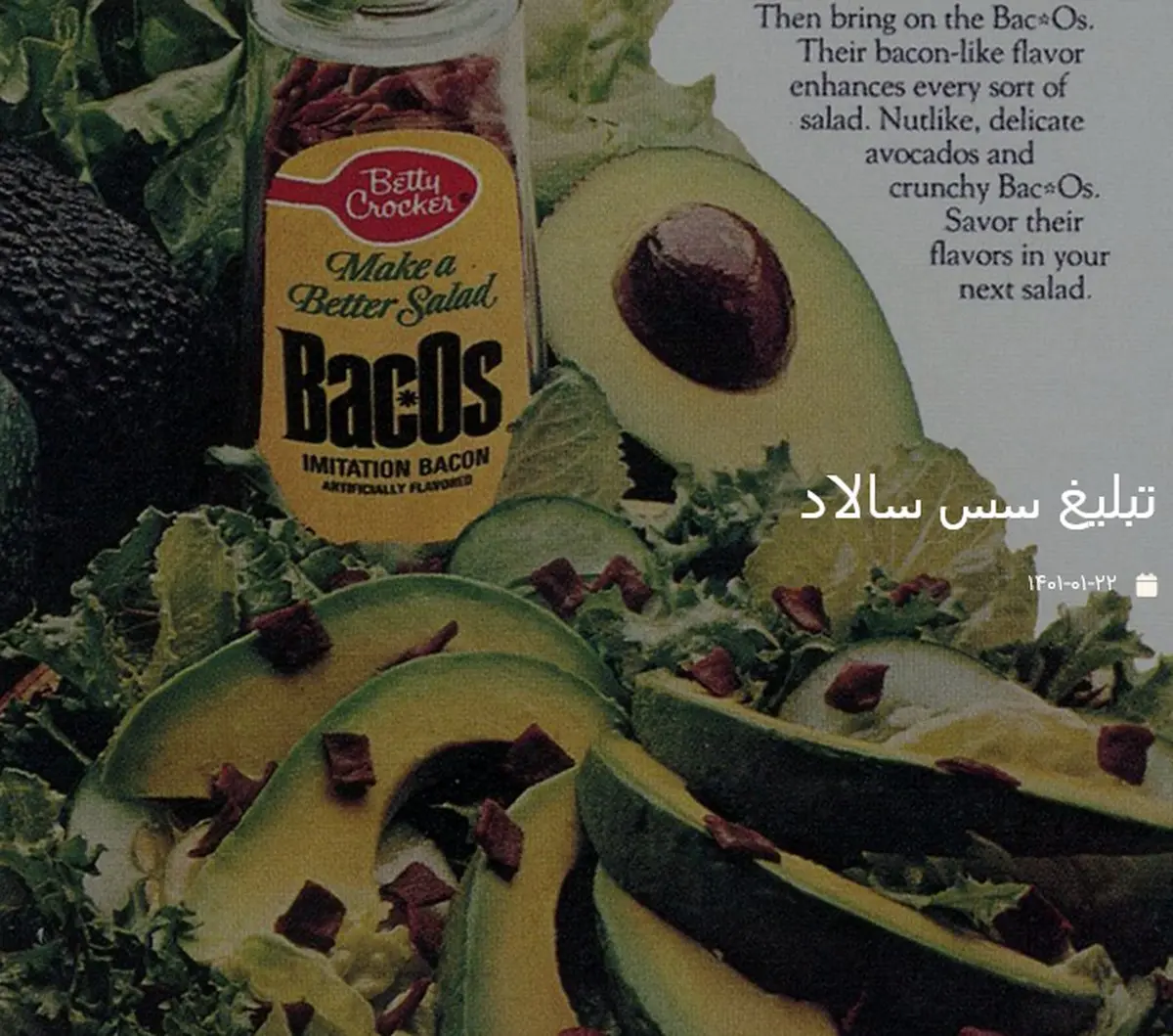 این تصویر قدیمی از این تبلیغ قدیمی سس سالاد برگرفته از کتاب عصر طلائی تبلیغات _ دهه 70 _ جیم هیمن