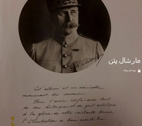 در این تصویر عکسی از مارشال پتن از کتاب آلبوم جنگ را مشاهده می کنید.