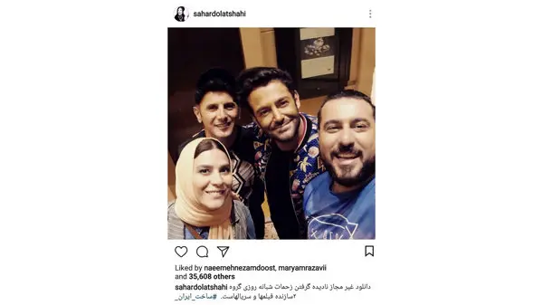 وی در توضیح این پست نوشت: دانلود غیر مجاز نادیده گرفتن زحمات شبانه روزى گروه سازنده فیلمها و سریالهاست. #ساخت_ایران_۲