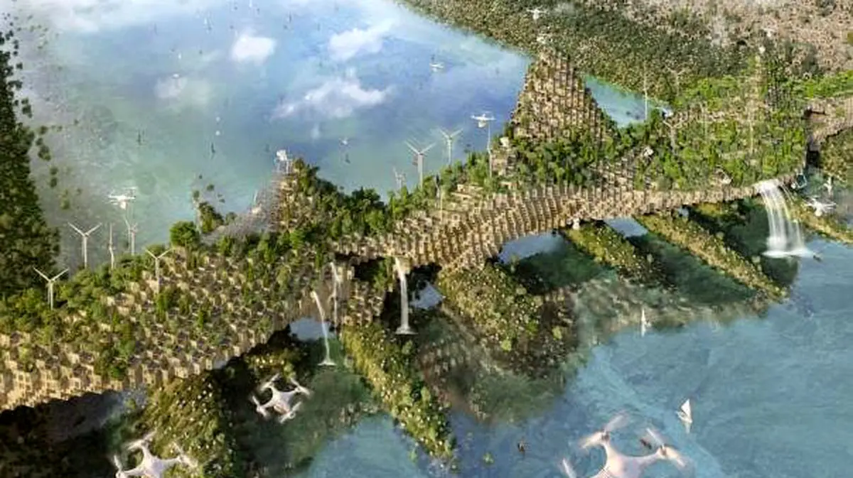 از سوی دیگر پهپادها با پرینترهای سه بعدی رباتیک همکاری می کنند. این پهپادها مواد مناسب ساخت و ساز را برای ربات ها فراهم می کنند تا بیش از ۵۰ هزار خانه ماژولی روی پل ها ساخته شود. این خانه ها مانند کندوی عسل هستند. روی این پل ها مزرعه های شهری و پوشش گیاهی گسترده می شود.