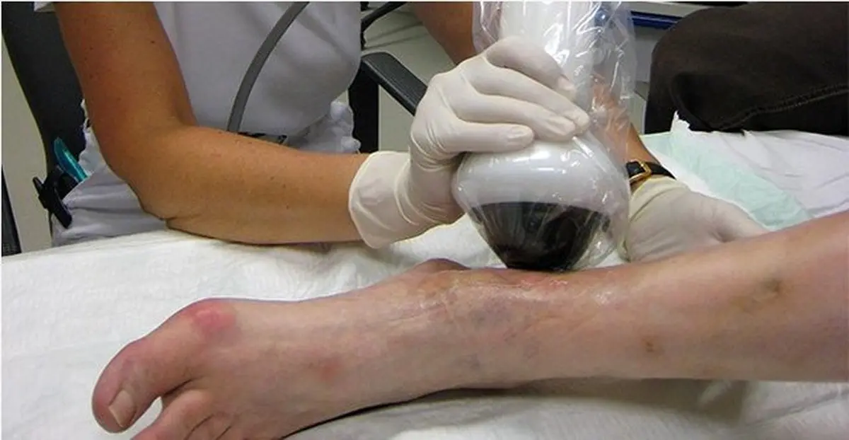 این دستگاه برای درمان زخمهای مزمن و ضخیم بیماران دیابتی استفاده میشود که سطح زخم بزرگتر از اندازه سطح مقطع یک قوطی نوشابه است.