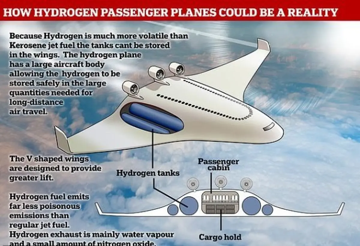 این وسایل نقلیه که V. شکل هستند، به جای سوخت معمولی با هیدروژن مایع پرواز میکنند و هیچ گونه دی اکسید کربنی منتشر نمیکنند.