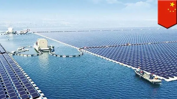روی یکی از رودخانههای چین صفحات خورشیدی نصب شده است.