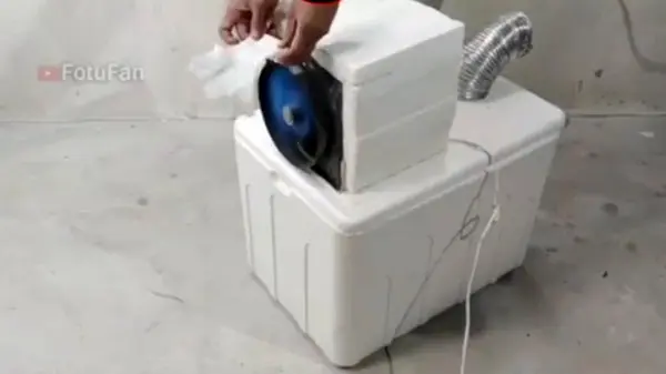 به گزارش رکنا، فردی خلاق با استفاده از یونولیت، لوله خرطومی بخاری، یخ و ابزاری دیگر، اقدام به ساخت یک کولر کرد.