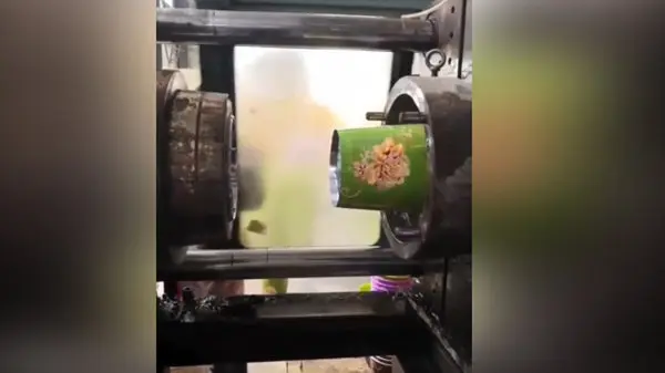 این دستگاه، با کمک یک فرد، عمل پرس کردن را انجام میدهد و پس از لحظاتی ظرف پلاستیکی طرح دار را تولید میکند که در ادامه، ویدئویی کوتاه از نحوه تولید آن را مشاهده میکنید.