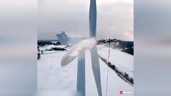 پرههای توربینهای بادی باید هرازگاهی تمیز شود که از پهپادها برای این کار استفاده می شود.