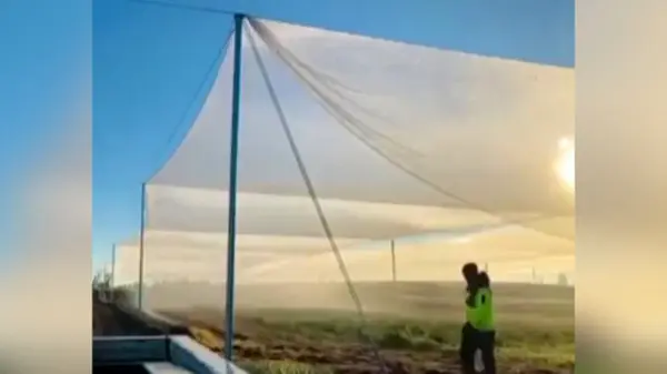 این تورها، شبها رطوبت هوا را به خود جذب میکنند و پس از آن در اول صبح با یک تکان کل مزرعه آبیاری میشود.
