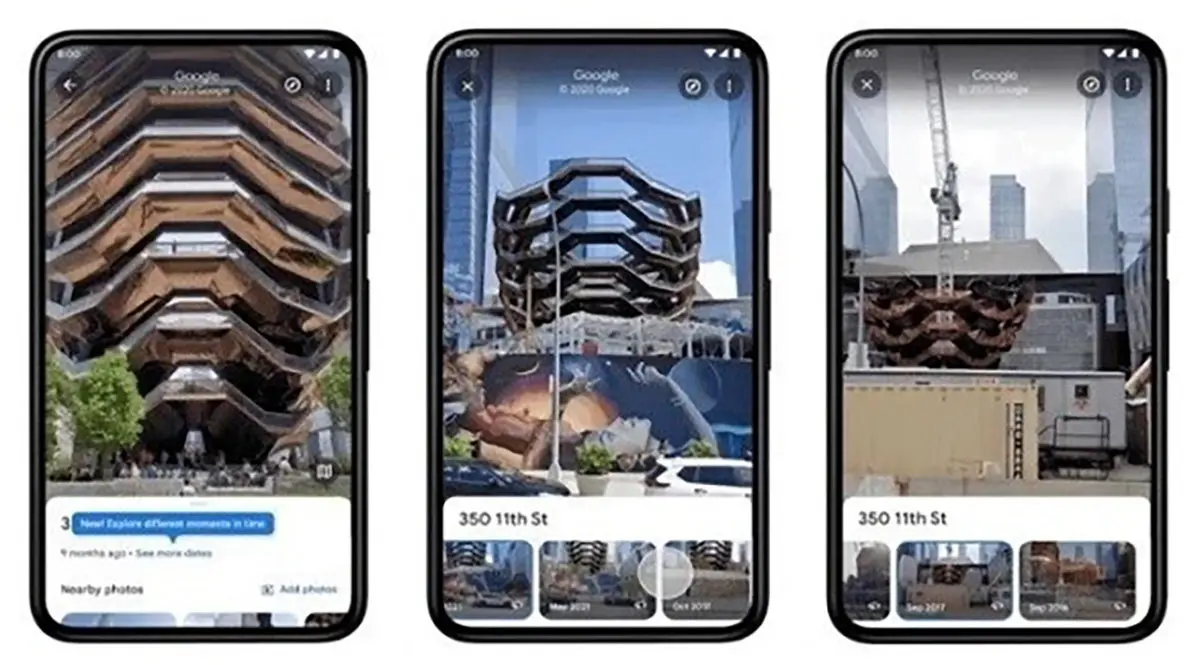 برای جشن تولد پانزده سالگی خود، ویژگی نمای خیابان برنامه نقشه گوگل به کاربران اجازه می‌دهد تا با ابزاری جدید به گذشته برگردند. به طور خاص، این ابزار به کاربران اجازه می‌دهد تا ببینند که چگونه چشم انداز در طول سال‌ها تغییر کرده است.