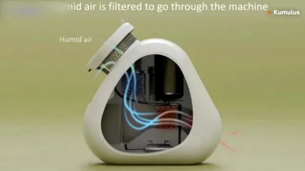 این دستگاه "کومولوس" نام دارد و هدفش تولید آب از انرژی خورشیدی و هوا است. کارکر د مفهومی این دستگاه تقریبا شبیه فرایند تشکیل شنبم صبحگاهی است.
