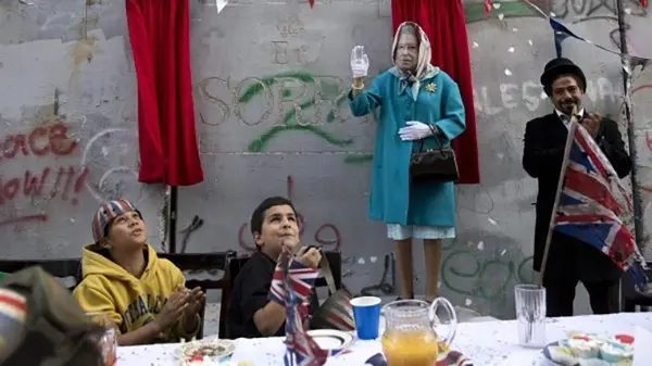 در این مراسم یک زن خود را به شکل ملکه الیزابت دوم درآورد تا به نقش پررنگ انگلیس در تأسیس اسرائیل اشاره کند.برای ورود به کانال تلگرام ما کلیک کنید.