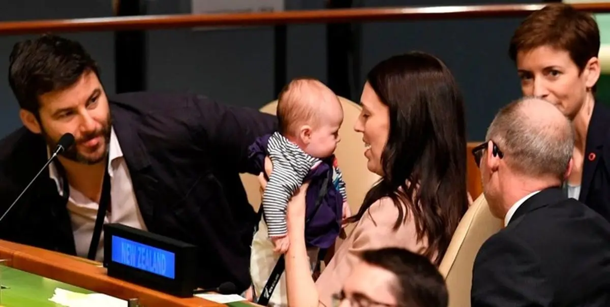 کودک سهماهه درحالی که روی زانوی پدرش «کلارک گیفورد» نشسته بود، نظارهگر سخنرانی آردرن نخستوزیر ۳۸ ساله نیوزیلند در مجمع عمومی سازمان ملل متحد بود.