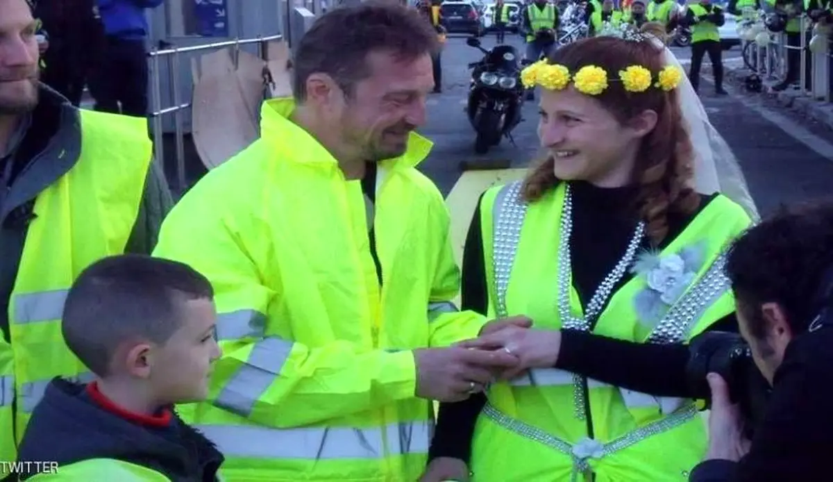 طبق گزارش رسانههای فرانسوی، این زوج که از قبل از شروع اعتراضات قصد ازدواج با یکدیگر را داشتند، روز شنبه در چهارمین شنبهی اعتراضات پاریس مراسم خود را درست وسط یک چهارراه برگزار کردند.