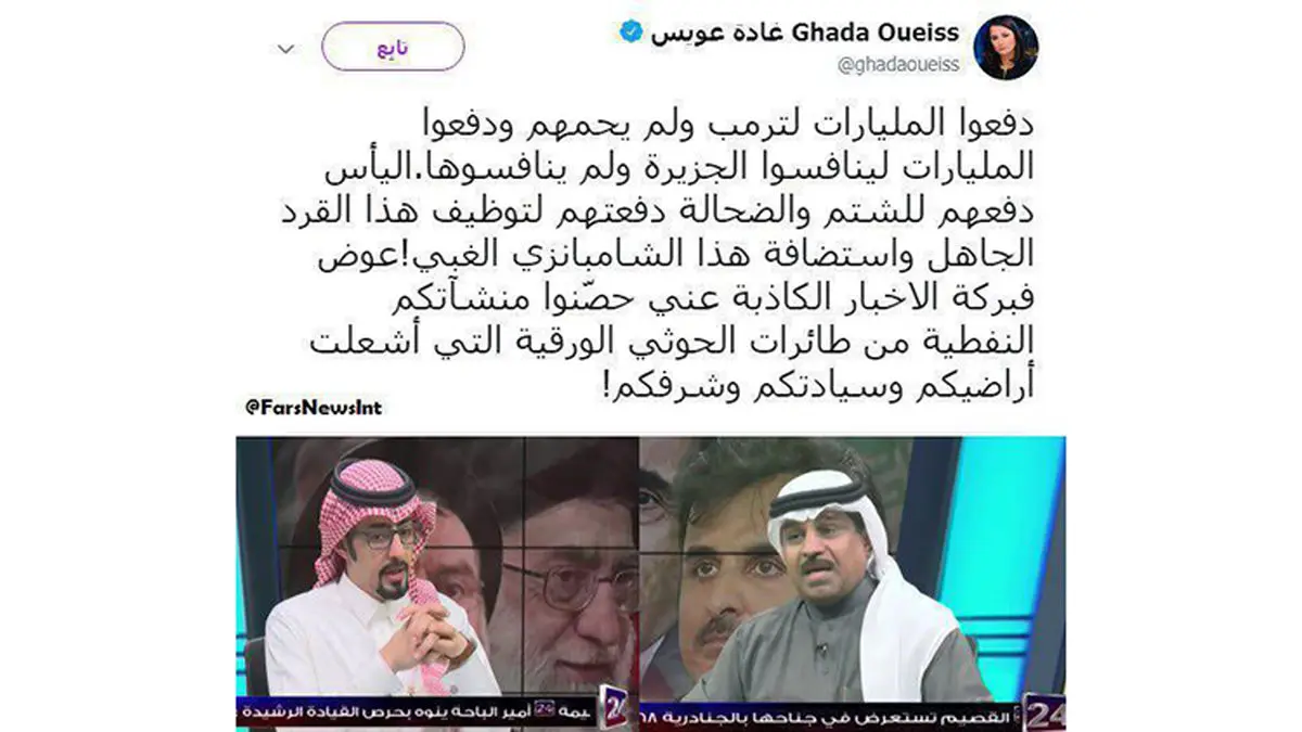 رکنا: غاده عویس پاسخی تند به بدگویی های شبکه «سعودی ۲۴» از قطر و الجزیره داد.