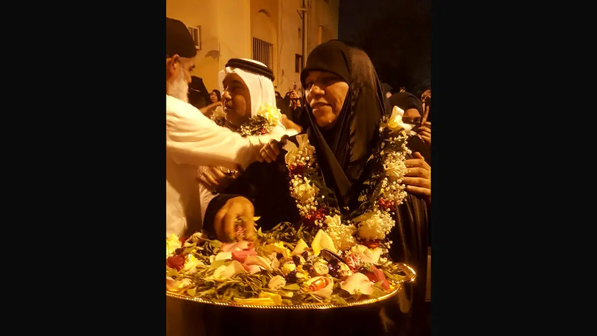 رکنا: پس از اعدام احمد الملالی جوان شیعه بحرینی مادر او به میان مردم آمد و اقدام به توزیع شیرینی و شکلات کرد.