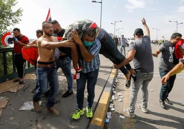 رکنا: اعتراضات روز جمعه (دیروز) در بغداد. در جریان اعتراضات دیروز عراق دستکم ۳۰ نفر کشته و بیش از ۱۸۰۰ نفر زخمی شدند.