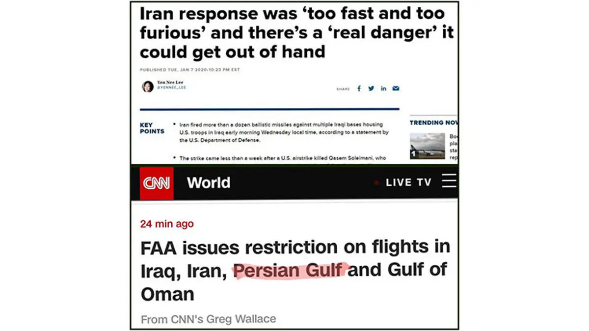 CNBC: توقع نداشتیم که ایران اینقدر زود و خشن پاسخ دهد/خبرگزاری سیانان که تاکنون از واژه جعلی خلیج استفاده می کرد برای اولین بار نوشت: «خلیج فارس»