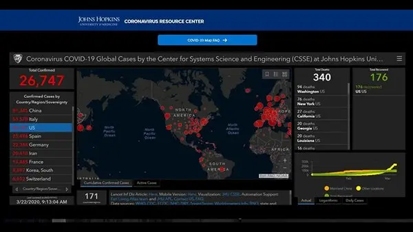 پایگاه اطلاع‌رسانی worldometer گزارش کرد که تعداد قربانیان ویروس کرونا در ایالات متحده آمریکا با افزایش ۴۶ نفری به ۳۴۸ مورد و تعداد مبتلایان به این ویروس با افزایش ۲۶۶۰ نفر به مجموع ۲۶ هزار و ۸۶۷ نفر رسید.