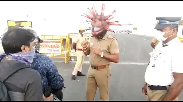 حوادث رکنا : پلیس هندوستان خود را به شکل کرونا درآورد و به هشدار به مردم این کشور درباره کرونا پرداخت.