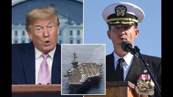 فرمانده برکنارشده ناو هواپیمابر تئودور روزولت، میان تشویق‌های ممتد و ابراز احساسات خدمه این ناو، محل خدمت خود را ترک کرد.برای ورود به کانال تلگرام ما کلیک کنید.