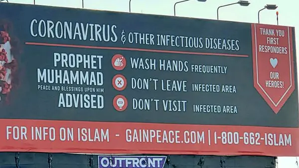 توصیههای بهداشتی پیامبر (ص) روی بیلبوردی در آمریکا + عکس