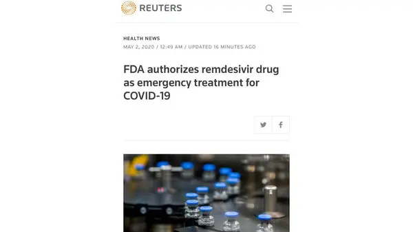 به گزارش رکنا، اداره غذا و داروی آمریکا به داروی رمدسیویر با هدف تسریع درمان کرونا مجوز اضطراری داده است.