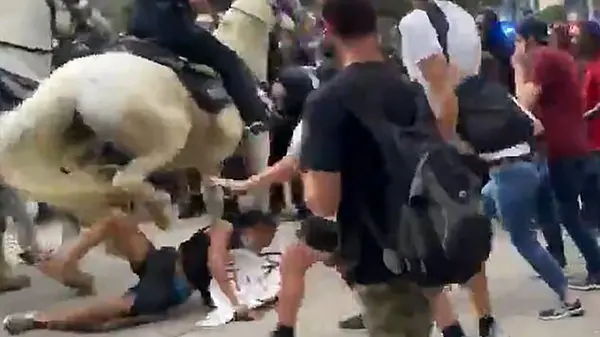 پلیس هوستون زن معترض را با اسب لگدمال کرد + عکس