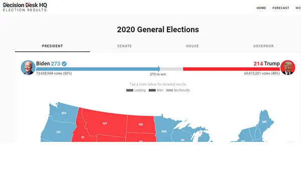 رکنا: یکی از هفت رسانه معتبر که وظیفه اطلاعرسانی آمار مربوط به انتخابات ریاست جمهوری آمریکا را بر عهده دارد، از رسیدن تعداد آرای الکترال جو بایدن به ۲۷۳ خبر داد.