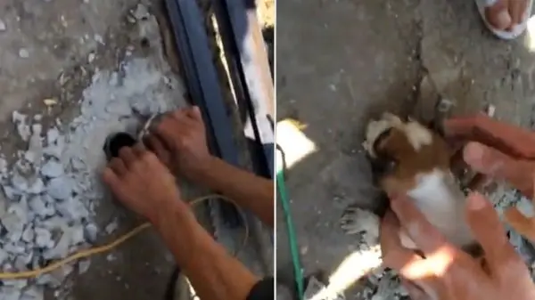 عده‌ای از جوانان هنگام رد شدن از یک خیابان در ویتنام ، متوجه حضور یک توله سگ که صدایش از داخل لوله گاز شنیده میشد شدند و پس از تلاش بسیار، موفق شدند توله شک را سالم از داخل لوله بیرون بیاورند.برای ورود به کانال تلگرام ما کلیک کنید.