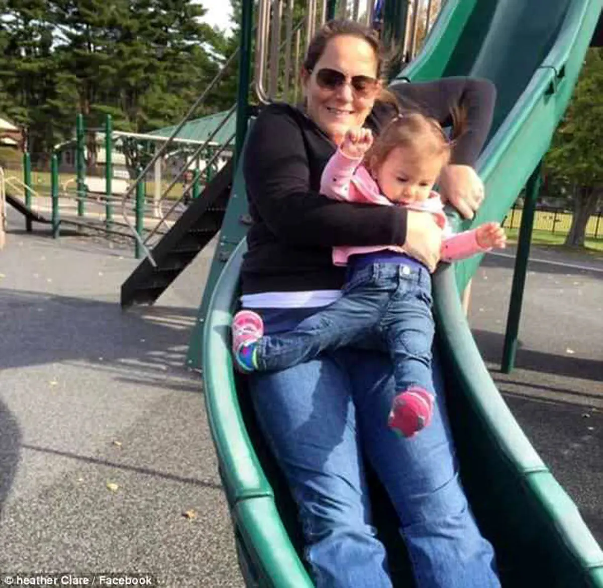این تصویر مربوط به هنگامی است که هیثر کلر دختر یک ساله اش را در آغوش گرفته و در حال پایین آمدن از یک سرسره کوچک و بی خطر هستند. اما تصویر منتشر شده نکته ای تلخ در بر دارد.